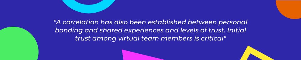 “A correlation has also been established between personal bonding and shared experiences and levels of trust. Initial trust among virtual team members is critical.“ - A model to develop effective virtual teams (2008).